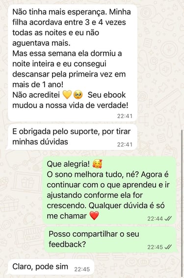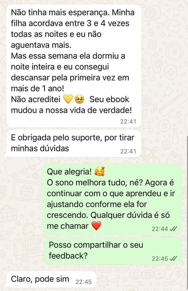 Amei o ebook, me ajudou muito, em uma semana já conseguimos noites mais calmas, com menos despertares.